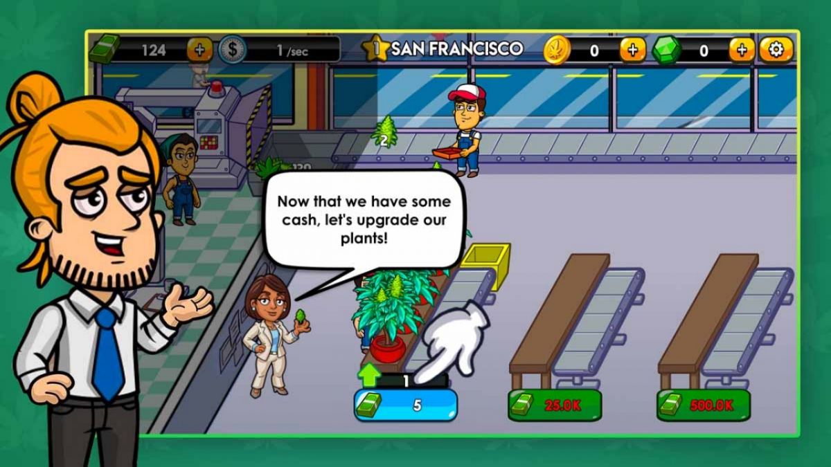 "Weed Inc" cleverly incorporates idle gaming mechanics, allowing players to continue progressing even when they are not actively playing. This feature adds an element of continuity, rewarding players for their dedication and persistence. Idle earnings accrue in the background, providing a steady income stream that can be reinvested to further expand the business. This idle aspect of the game caters to a wide audience, accommodating both casual players who enjoy occasional check-ins and those who prefer more immersive, continuous gameplay.