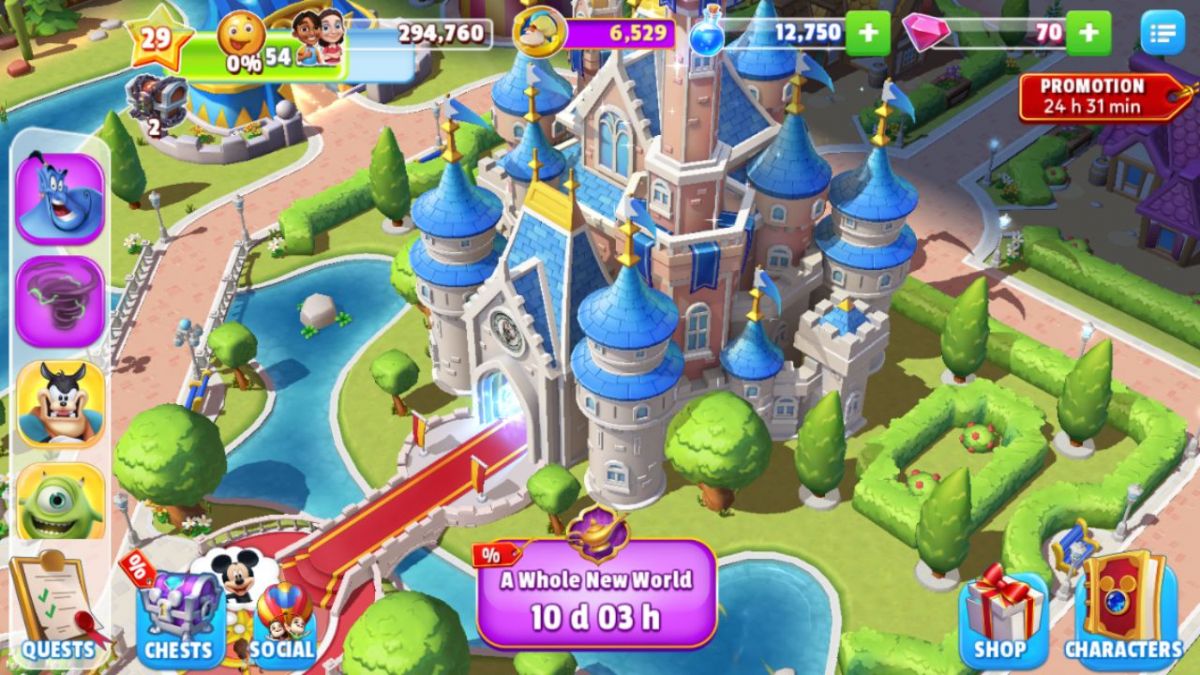 The game incorporates a currency system represented by Magic, which players use to build attractions, welcome characters, and complete various actions in the park. The introduction introduces players to the earning and spending of Magic, emphasizing the importance of managing resources efficiently to expand and enhance their Disney-themed park. The virtual economy adds a layer of strategy to Disney Magic Kingdoms, as players make decisions on where to invest their resources for optimal park growth.