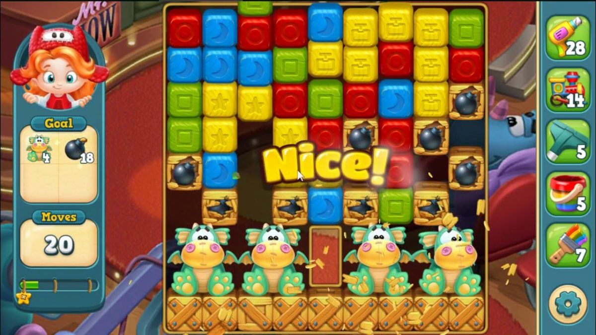 The goal of each level varies, ranging from achieving a certain score to freeing toys trapped in blocks or reaching a specific point threshold. As players progress, new challenges and block types are introduced, keeping the gameplay fresh and engaging. The limited number of moves in each level adds a strategic element, requiring players to plan their moves carefully to achieve the objectives.