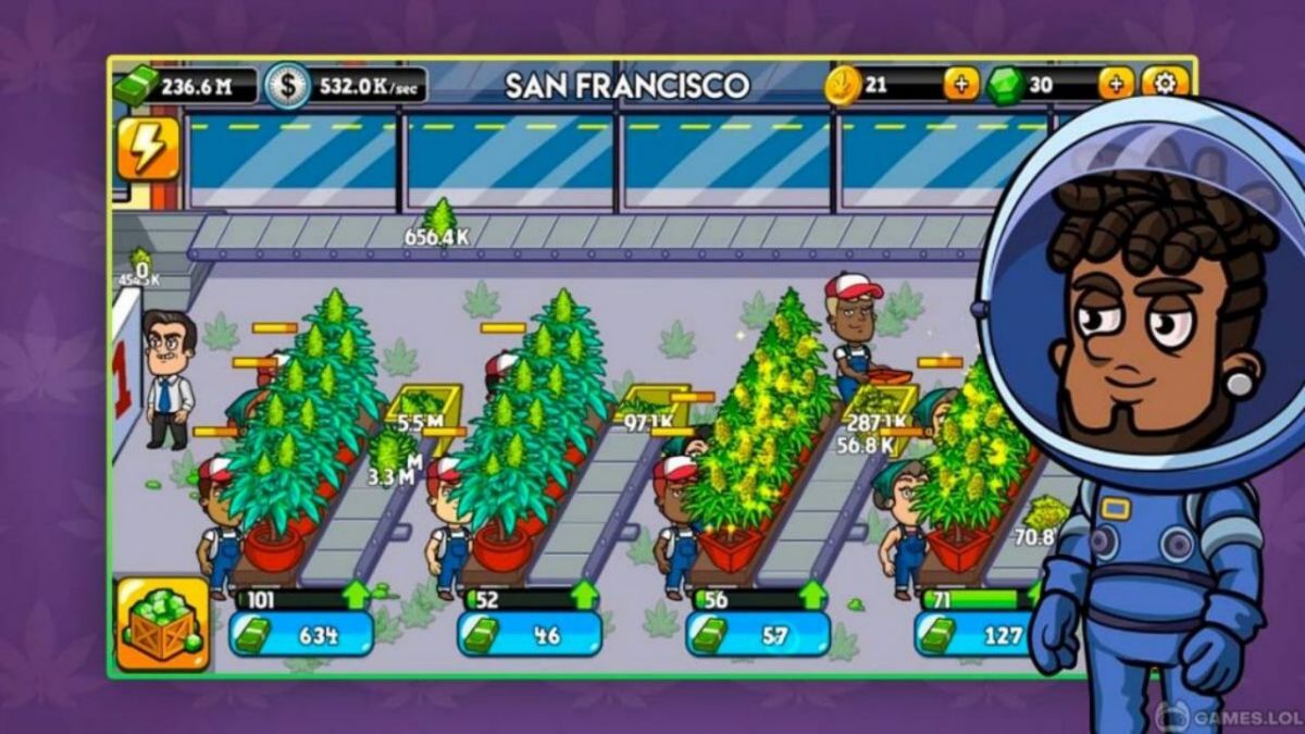 Upon entering the game, players are greeted with a visually appealing and well-designed interface that sets the stage for their entrepreneurial journey. The game opens with a lush cannabis farm awaiting development, offering players a blank canvas on which to paint their vision of a thriving business. The graphics are vibrant, capturing the essence of the cannabis culture, with lush green fields and intricately designed structures that evolve as the player progresses.